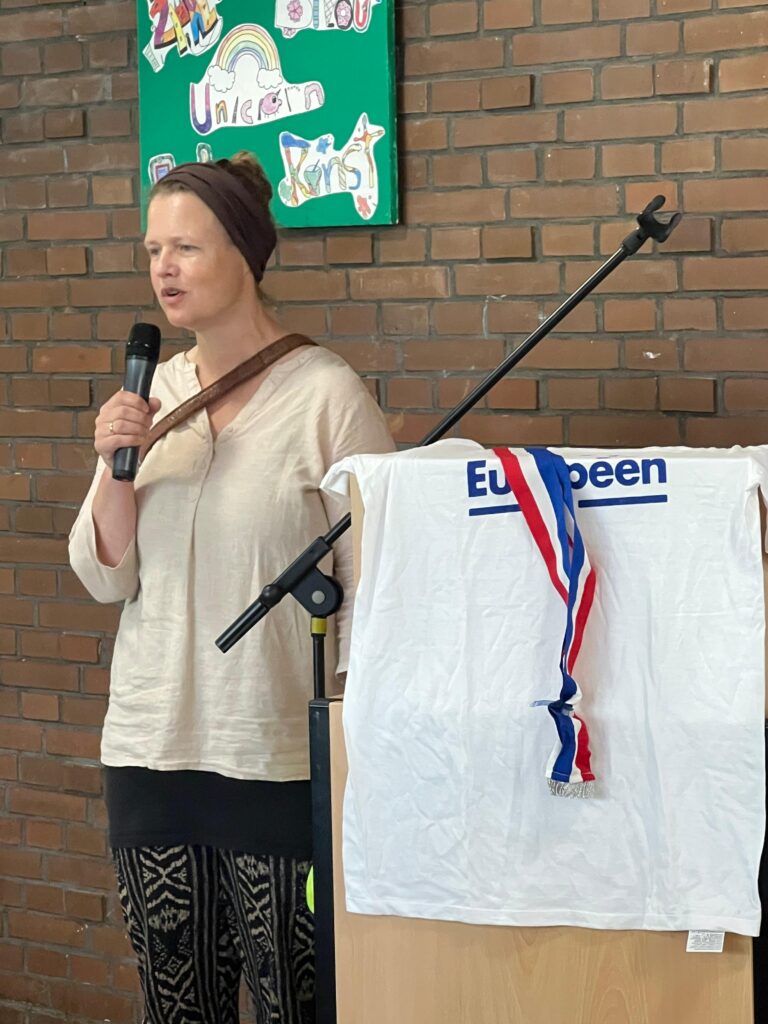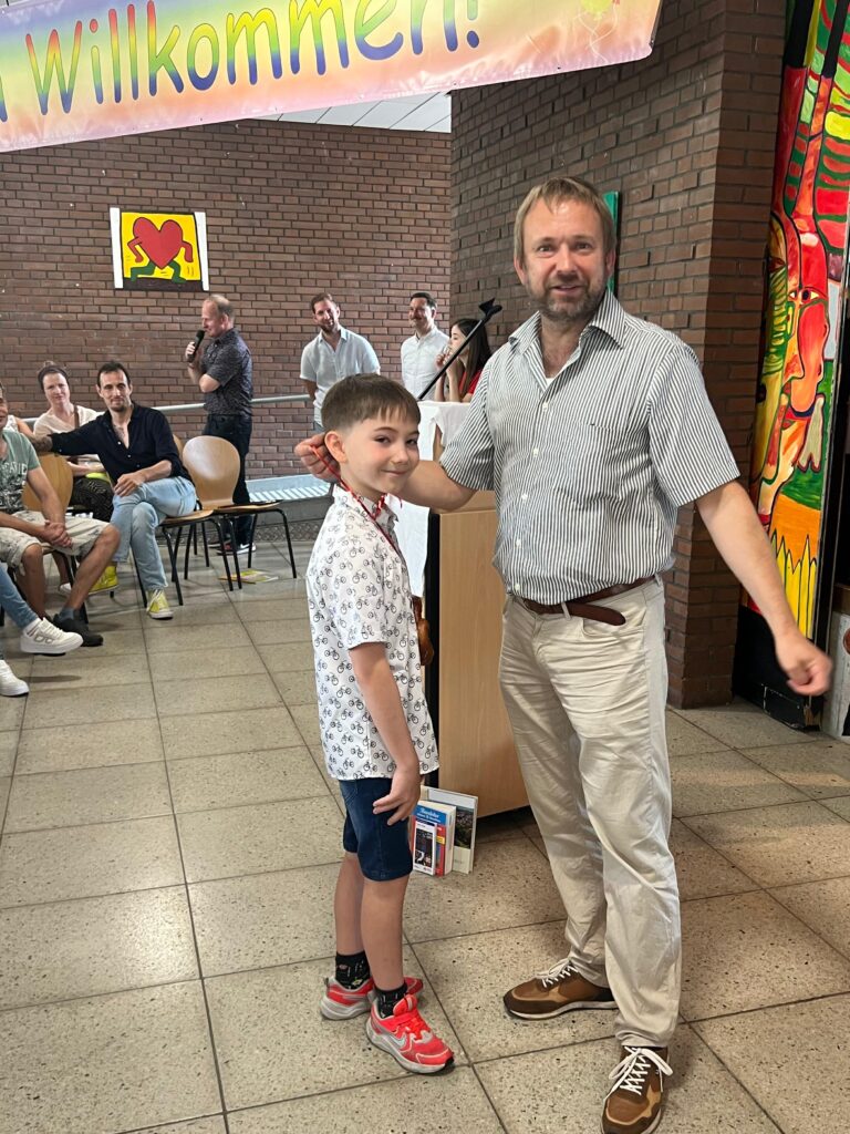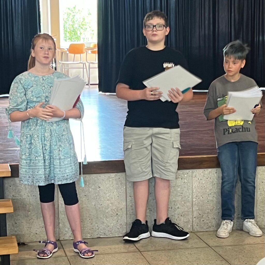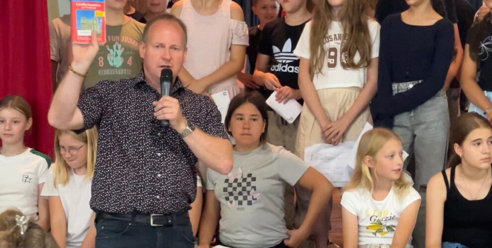 6. Jahrgang wurden unter Mithilfe der Schulsozialarbeiterin Julia Geiseler aktiv und überreichten “Willkommens-Mappen.” Appetit auf die Realschule hat Schulleiter Björn Edelmann in seiner Ansprache gemacht, besonders auf die vielfältigen Aktivitäten mit Fahrten nach Polen, Frankreich und England im Rahmen der Realschule Munster als Europaschule können sich die Neuen freuen. Aber auch auf neue Lernmethoden müssen sich die 5.-Klässler einstellen, so soll in Zukunft sehr viel stärker eigenverantwortlich gelernt werden. Und als Edelmann über das generelle Handyverbot informierte, gab es von den Erziehungsberechtigten sogar Applaus.