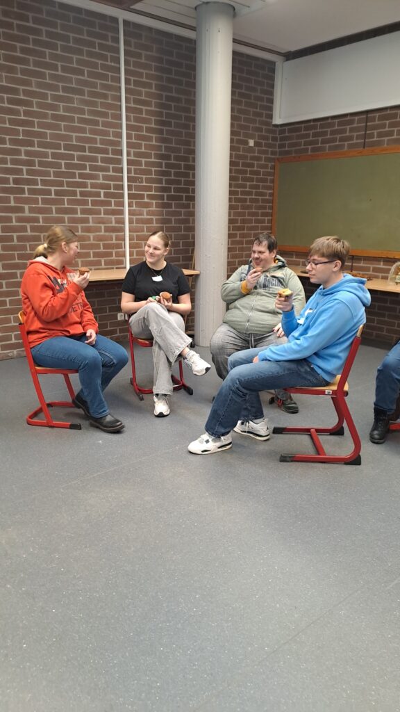Ganz alleine war sie dabei natürlich nicht, eine ganze Reihe von Schülerinnen und Schülern der 9a haben bei der Planung und der Organisation des Treffens mitgewirkt. So auch Viktoria Istokova: „Wir haben eine gemeinsame Backaktion und ein paar Spiele vorbereitet, außerdem ist noch ein Schulrundgang geplant. Beim Verspeisen der gemeinsam gebackenen Muffins zogen am Ende alle ein positives Fazit: „Ich finde diesen Tag sehr entspannt und wir haben uns gut miteinander unterhalten“, sagt Emy Marquard. „Der ganze Tag verlief in einer angenehmen Atmosphäre“, findet Elaine Markgraf. Vorurteile gegenüber Menschen mit Behinderungen hat Jan Ermlich auch vorher nicht gehabt, „genau so habe ich mir die Aktion auch vorgestellt“, stellte er fest. Sabine und Wilfried, Beschäftigte beim Heidewerk, haben schon einige Besuche von Realschülern beim Heidewerk erlebt. „Ich finde es toll, dass die Schüler, die mal Kontakt mit uns hatten, anschließend so freundlich zu uns sind, wenn sie uns mal beim Einkaufen treffen.“ Auch Wilfried findet, dass diese gemeinsamen Aktionen dabei helfen, Vorurteile auf beiden Seiten abzubauen.
